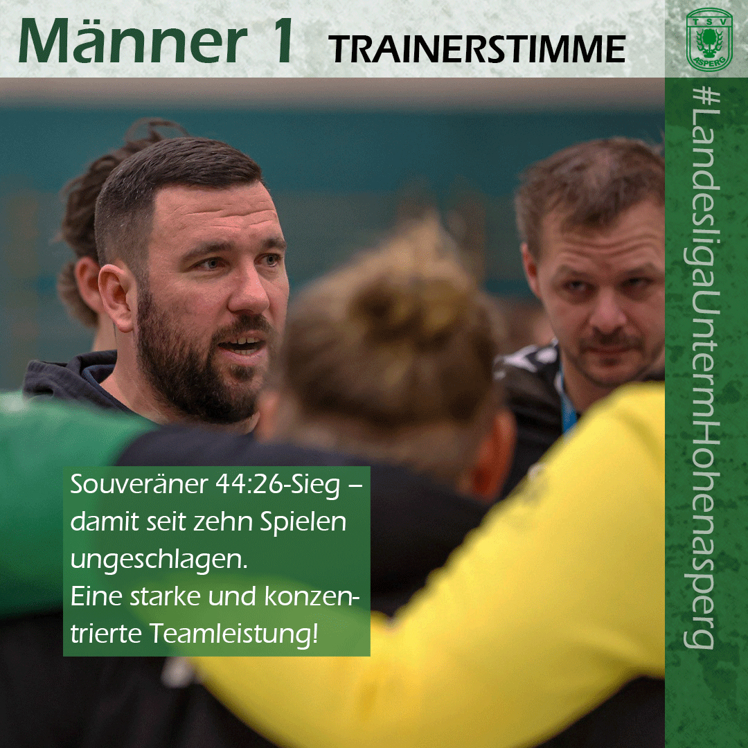 Fazit des Trainers: „Souveräner 44:26-Sieg – damit seit zehn Spielen ungeschlagen. Eine starke und konzentrierte Teamleistung!“