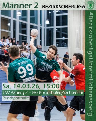 Nach zwei knappen Niederlagen geht es für die zweite Männermannschaft am kommenden Samstag darum, den vierten Tabellenplatz zu verteidigen. Um 15 Uhr ist der Tabellenachte HG Königshofen/Sachsenflur zu Gast in der Rundsporthalle. Mit drei Siegen aus den letzten vier Spielen hat sich die HG im Tabellenkeller etwas nach oben gearbeitet. Die Asperger hingegen wollen ihren Negativtrend beenden und den achten Sieg einfahren, um den Anschluss nach oben nicht ganz zu verlieren.