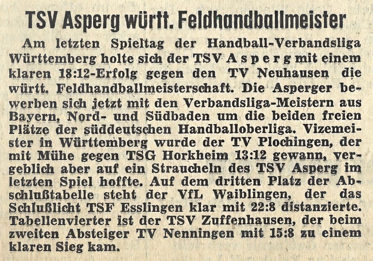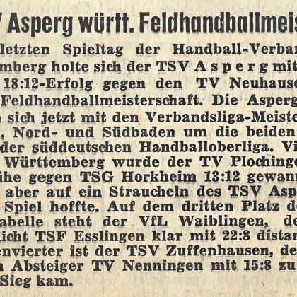 - Aufbau der ersten Handballmannschaft in Asperg