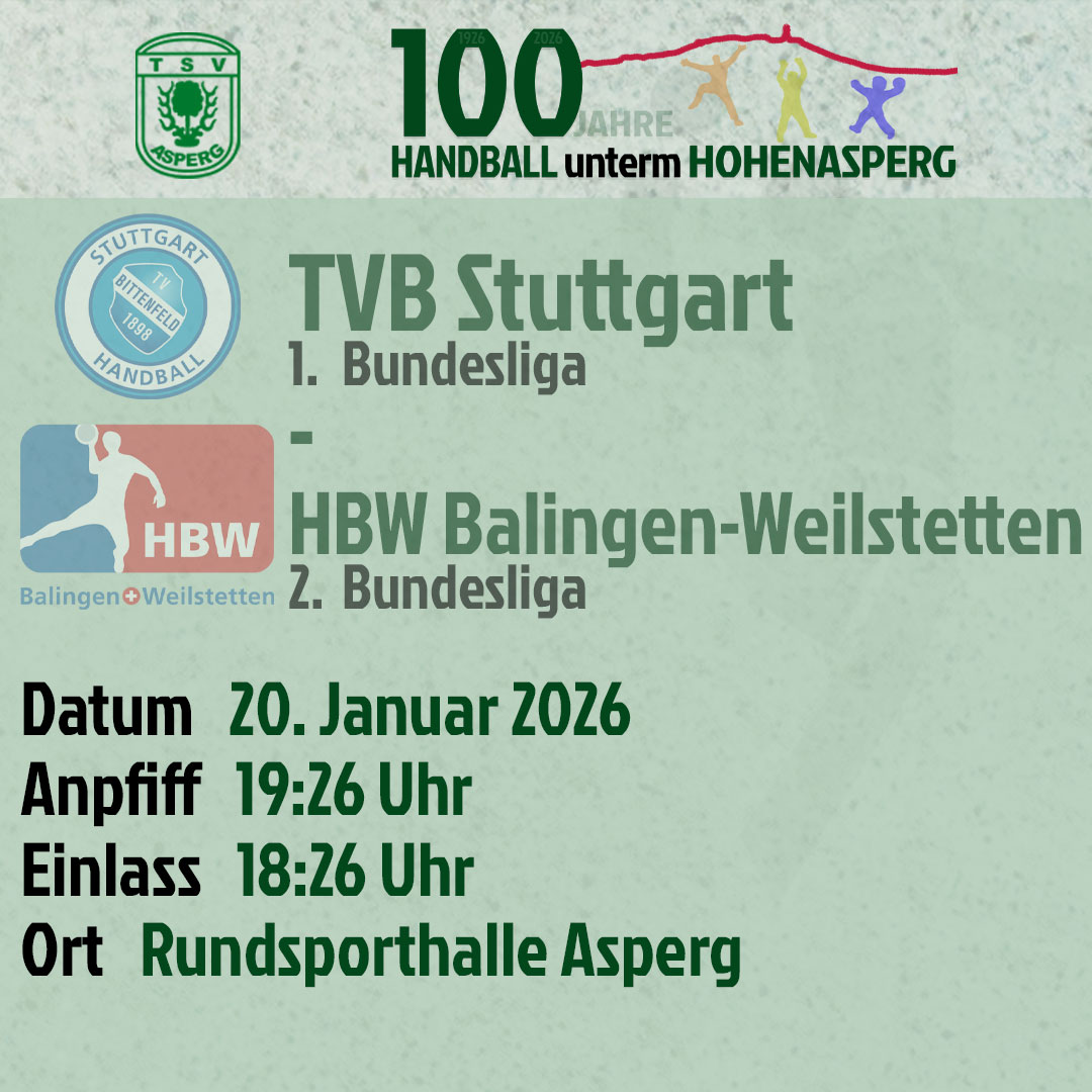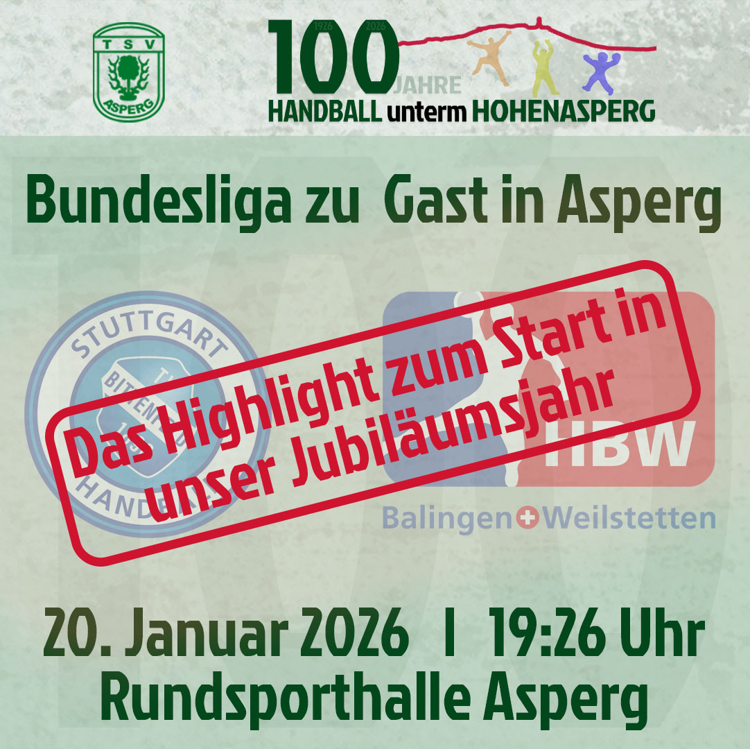 Und auch ein Jahrhundert später wird in Asperg noch mit großer Begeisterung Handball gespielt. 2026 feiert die Asperger Handballabteilung daher #100JahreHandballUntermHohenasperg mit unterschiedlichen Events über das ganze Jahr.