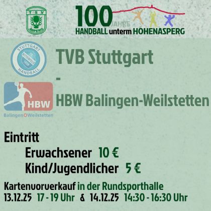 Gleich zum Start in unser Jubiläumsjahr wartet ein echtes Highlight: Unser Partnerverein @tvbstuttgart trifft in der Rundsporthalle in einem Vorbereitungsspiel auf den HBW Balingen-Weilstetten! Also 1. Bundesliga gegen 2. Bundesliga und das in Asperg.