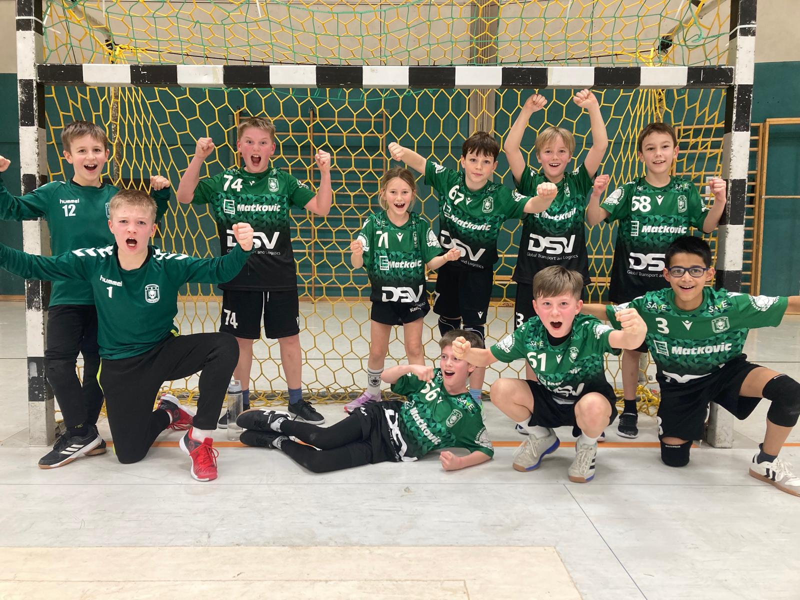 Die E2 startete am Vormittag. Sie setzte ihren starken Aufwärtstrend fort und krönte den Tag mit einer geschlossenen Mannschaftsleistung. Erstmalig konnten alle Funino- und Handballspiele an einem Heimspieltag gewonnen
