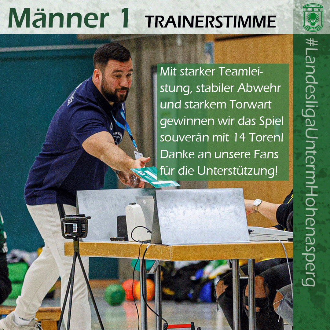 Fazit des Trainers: „Mit starker Teamleistung, stabiler Abwehr und starkem Torwart gewinnen wir das Spiel souverän mit 14 Toren! Danke an unsere Fans für die Unterstützung!“