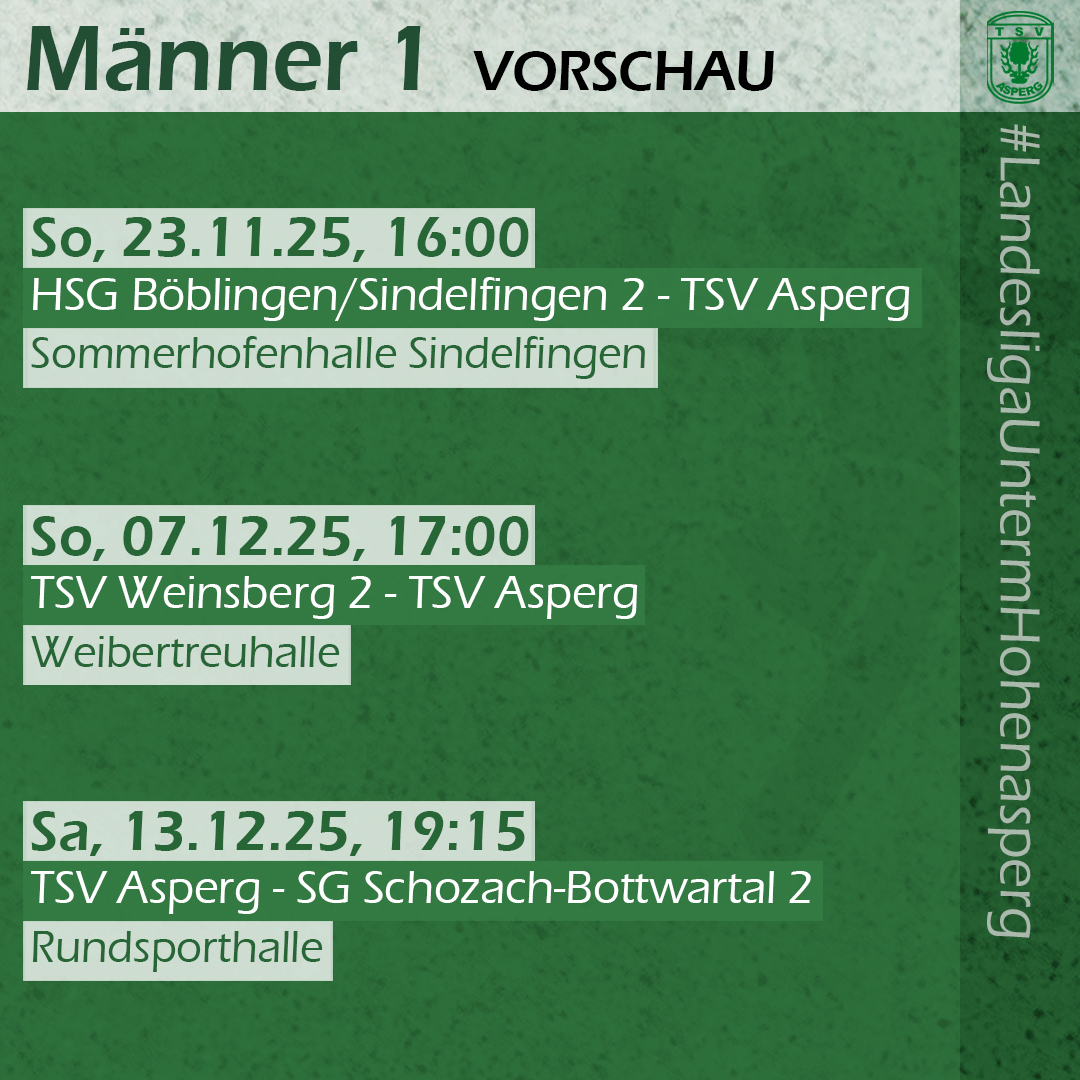 Acht Spiele noch, dann ist das Jahr 2025 für die Asperger Handballer beendet. Fünf davon finden am Samstag nochmal in der Rundsporthalle statt....