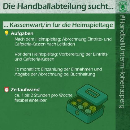 … eine/n ehrenamtliche/n Kassenwart/in für unsere Heimspieltage