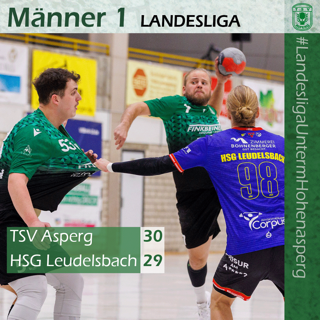 „Hauptsache gewonnen!“, Trainer Oliver Cicione sprach nach dem Spiel aus, was viele Asperger Fans in der Rundsporthalle dachten. Zahlreiche Unsicherheiten und Unkonzentriertheiten im Spiel der Männer 1 führten am Samstagabend im Derby gegen die HSG Leudelsbach zu einem spannenden Spielverlauf und einem knappen 30:29-Heimsieg.