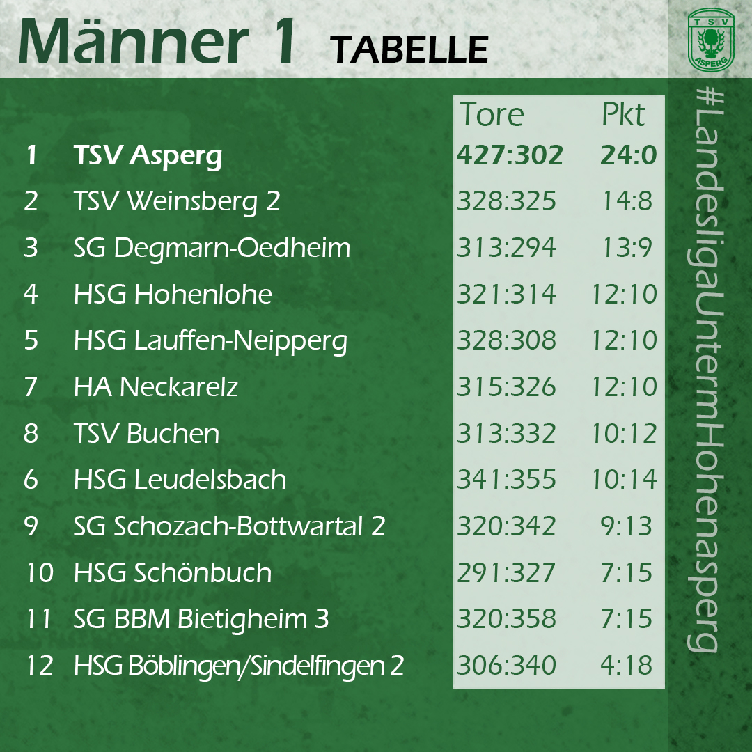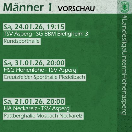 Die Lage in der Liga: Neben Asperg und Leudelsbach waren dieses Wochenende nur noch zwei weitere Teams im Einsatz. Die SG Schozach-Bottwartal 2 verschaffte sich etwas Luft nach unten. Sie gewann gegen die HSG Böblingen/Sindelfingen 2 mit 34:27. Am vergangenen Wochenende eröffnete die HA Neckarelz mit einem 31:26-Sieg gegen Leudelsbach das Jahr 2026.
