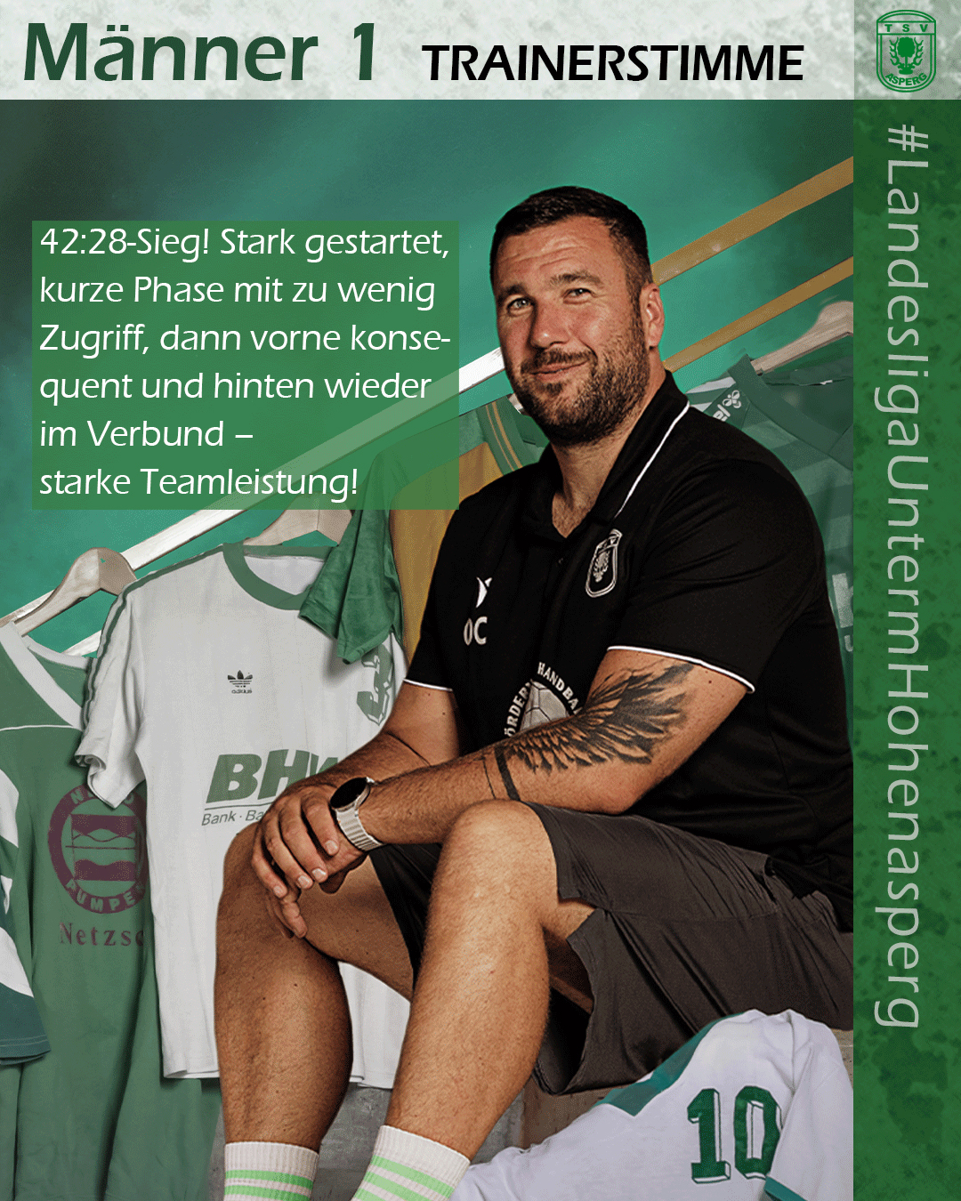 Fazit des Trainers: „42:28-Sieg! Stark gestartet, kurze Phase mit zu wenig Zugriff, dann vorne konsequent und hinten wieder im Verbund – starke Teamleistung!“