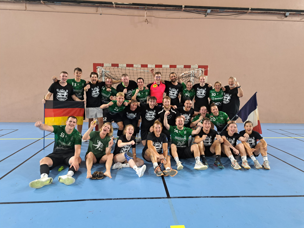 Nach einem gemeinsam einstudierten Lied (verliebt de toi) rundete das bereits legendäre Handballspiel der deutschen und französischen Betreuermannschaften den gemeinsamen Sporttag ab; erneut mit einem Sieg für den HBC-Lure-Villiers. Mit einem ausgeglichenen Halbzeitstand (15:15) und einer Differenz von nur 5 Toren waren die Asperger den Lurer Handballern noch nie so knapp auf den Fersen wie in diesem Jahr!