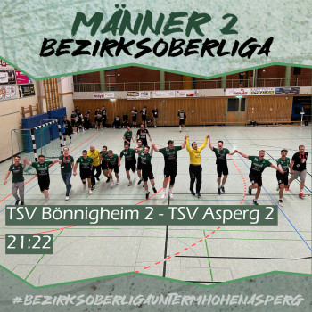 Die zweite Männermannschaft ist erfolgreich in ihre erste Spielzeit in der höchsten Liga im Bezirk gestartet. Bis zum Sieg beim TSV Bönnigheim 2 war es aber ein hartes Stück Arbeit. Die Anfangsminuten gehörten den Aspergern. Ole Hammerschick brachte den TSV in der 12. Minute mit 7:3 in Front. In der 25. Minute kam Bönnigheim wieder zum Ausgleich (8:8), doch in die Pause gingen die Asperger wieder mit einer Zwei-Tore-Führung: 9:11. Trotz teilweiser Vier-Tore-Führung wurde das Spiel in Hälfte zwei nochmal spannend. Die Führung ließ sich die Mannschaft von Nico Matysik und Clemens Streich aber nicht mehr nehmen. Mit 22:21 setzte sich der TSV durch und feierte die ersten zwei Punkte in der Bezirksoberliga.