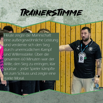 Fazit des Trainers: „Heute zeigte die Mannschaft eine außergewöhnliche Leistung und verdiente sich den Sieg durch unermüdlichen Kampf und Willensstärke. Über die gesamten 60 Minuten war der Wille, den Sieg zu erringen, klar spürbar – jeder Spieler kämpfte bis zum Schluss und zeigte eine starke Moral.“