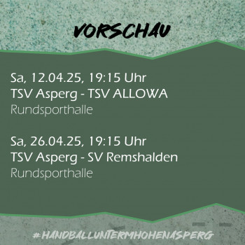 Das nächste Spiel: Zwei Heimspiele stehen für die Asperger nun noch aus. Am kommenden Samstag kommt um 19:15 Uhr mit dem TSV Alfdorf/Lorch/Waldhausen eine Mannschaft in die Rundsporthalle, die auf Platz fünf noch Ambitionen nach oben hat.