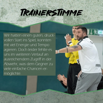 Fazit des Trainers: „Wir hatten einen guten, druckvollen Start ins Spiel, konnten mit viel Energie und Tempo agieren. Doch leider fehlte es uns im weiteren Verlauf an ausreichendem Zugriff in der Abwehr, was dem Gegner zu viele einfache Chancen ermöglichte.“