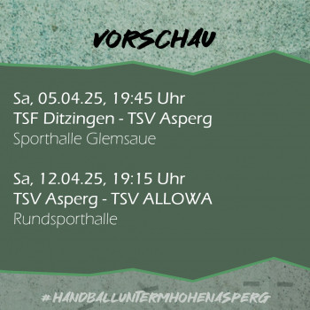 Das nächste Spiel: In der kommenden Woche bestreiten die Asperger das letzte Enz-Murr-Duell der Saison. Der TSV ist am Samstag ab 19:45 Uhr zu Gast bei den TSF Ditzingen in der Sporthalle Glemsaue (Gröningerstraße, 71254 Ditzingen).