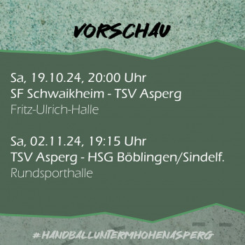 Das nächste Spiel: Zum ersten Mal in dieser Saison tritt die erste Männermannschaft am kommenden Samstag gegen ein Team an, das in der Tabelle hinter dem TSV liegt. Die SF Schwaikheim warten nach vier Spielen weiter auf die ersten Pluspunkte und mussten sich am vergangenen Spieltag den TSF Ditzingen mit 24:27 geschlagen geben. Spielbeginn in der Fritz-Ulrich-Halle (Badstraße 24, 71409 Schwaikheim