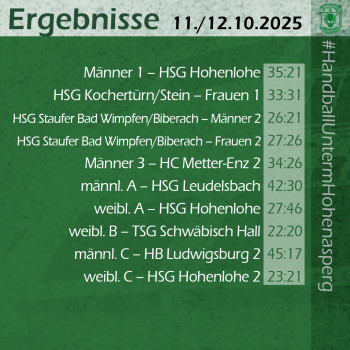 Im Jugendbereich waren die männliche A (42:30 gegen die HSG Leudelsbach) und die weibliche B (22:20 gegen die TSG Schwäbisch Hall), sowie die männliche C (45:17 gegen HB Ludwigsburg 2) und die weibliche C-Jugend (23:21 gegen Hohenlohe 2) erfolgreich. Für die weibliche A und die D-Jugenden gab es Niederlagen.
