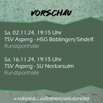 Das nächste Spiel: Zwei Wochen hat das Trainerteam nun Zeit das Spiel in Schwaikheim aus den Köpfen der Spieler zu bringen und das Team auf das nächste Kellerduell einzustellen. Am Samstag, den 02. November ist um 19:15 Uhr die HSG Böblingen/Sindelfingen zu Gast in der Rundsporthalle, die mit 0:8 Punkten hinter den Aspergern liegt.