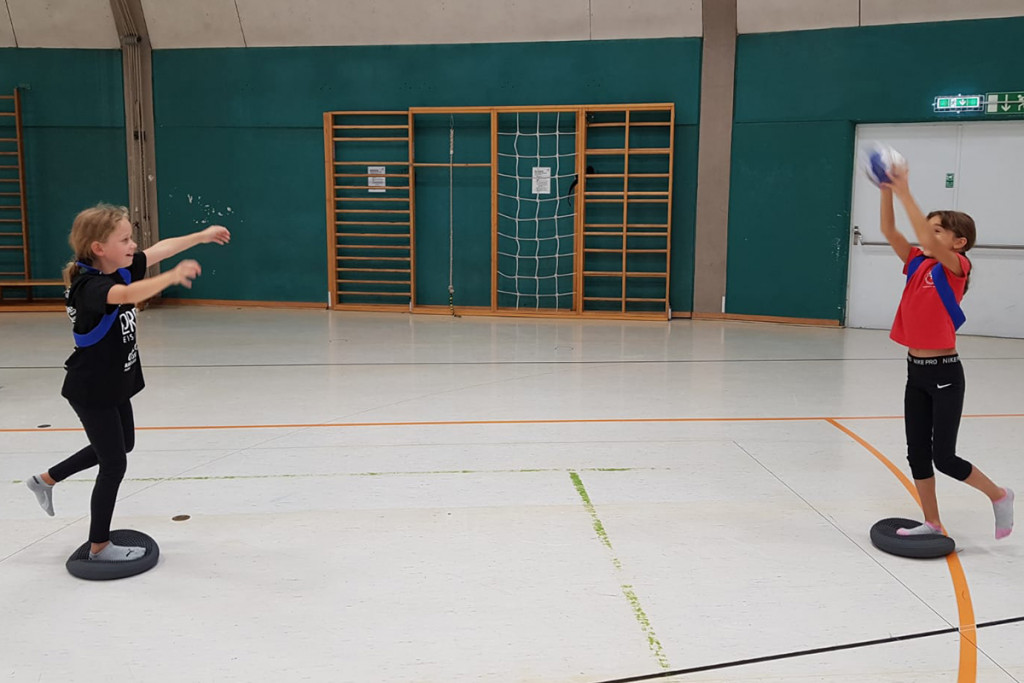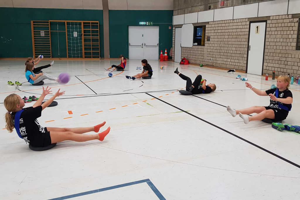 Im ersten Training in der Rundsporthalle haben wir die neuen "Balance Boards" ausprobiert, die aus der Aktion "Scheine für Vereine" beim REWE an die Handballabteilung gingen.