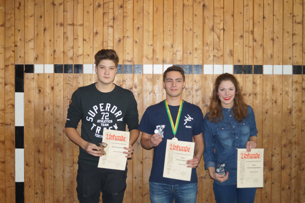 Seit einigen Jahren findet unsere Jahresabschlussfeier im November in der Kleinturnhalle statt. In geselligem Beisammensein mit Kaffee und Kuchen gibt es einen Jahresrückblick und die Ehrung der Vereinsmeister und Vereinsmeisterinnen. Vizevereinsmeister/in sind in diesem Jahr Robin Mall und Lena Schmider. Den Titel holten sich Leonard Huber und Alina Schoch. Zum ersten Mal in diesem Jahr gab es für unsere Leistungsgruppe zusätzlich eine getrennte Wertung, in der die Zeiten über 100m in allen Schwimmstilen genommen wurden. Auch hier waren Leonard Huber und Alina Schoch die schnellsten. Nochmals von uns herzlichen Glückwunsch an alle für ihre tollen Leistungen.