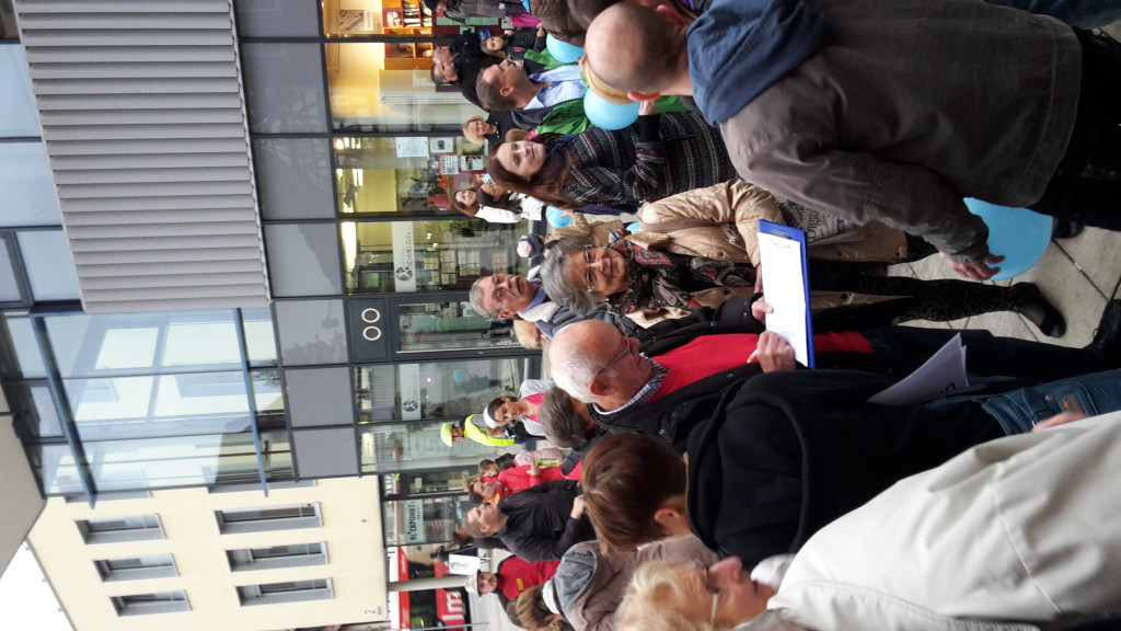 Seit Bekanntwerden der Tagesordnung liefen bei uns Schwimmern und beim DLRG die Aktionen auf Hochtouren, um unser „Bädle“ zu behalten. So trafen wir uns auch am Dienstag schon lange vor Beginn der Gemeinderatssitzung vor dem Rathaus. Mit im Gepäck viele Plakate, Transparente und wasserblaue Luftballons.