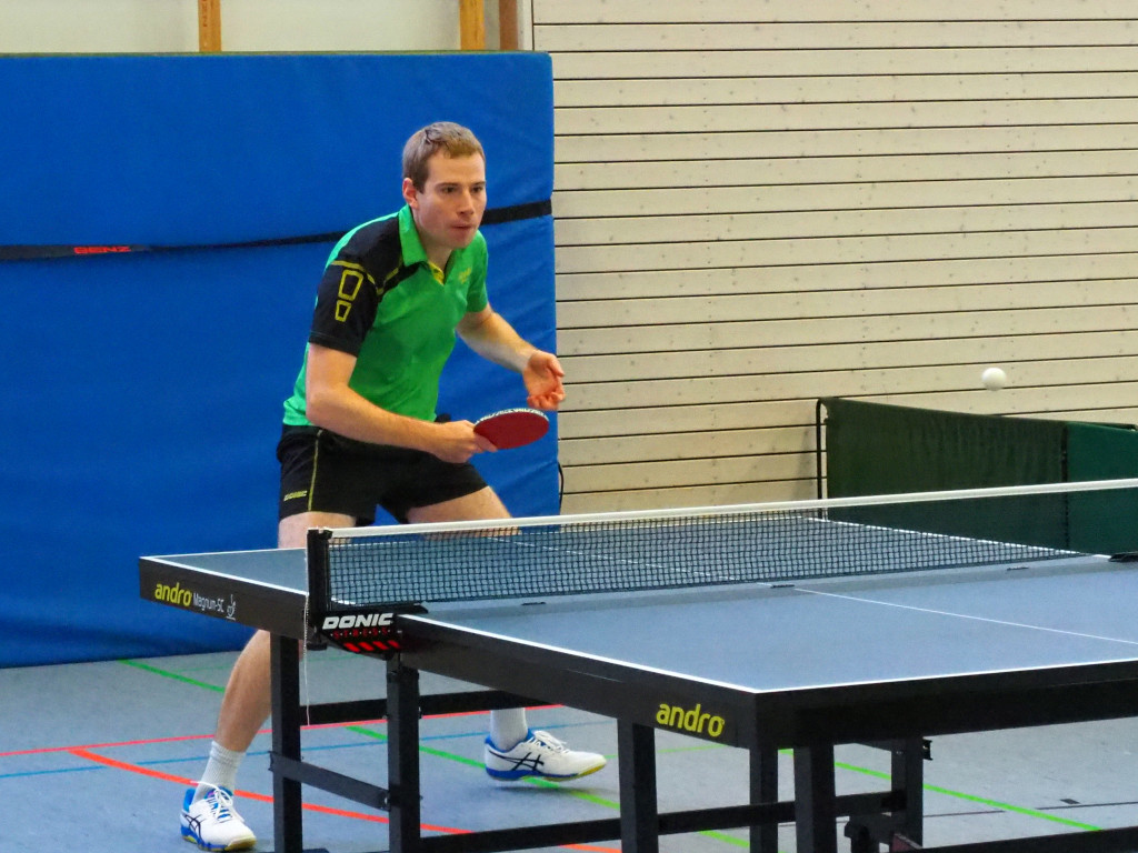 Im Anschluss tat sich Benedikt Mosbach zu Beginn schwer in sein Spiel zu finden, konnte sich dann aber deutlich steigern und gewann in 5 Sätzen gegen L. Pala. Geburtstagskind Bastian Barth wollte schnell zum Feiern und siegte flott und überzeugend in drei Sätzen gegen Baron. Michael Mehrens musste sich in seinem Einzel D. Pala 1:3 geschlagen geben. Anschließend gewann David Bauer deutlich mit 3:0 gegen den jungen Oelmann. Im dritten Paarkreuz verlor Luca Dittrich noch den ersten Satz gegen J. Leibfried, konnte anschließend jedoch die nächsten 3 Sätze für sich entscheiden und so auf 7:1 erhöhen. Salvatore Venniro war durch das Fehlen des 6ten Mannes aus Hochdorf zum Zuschauen gezwungen.