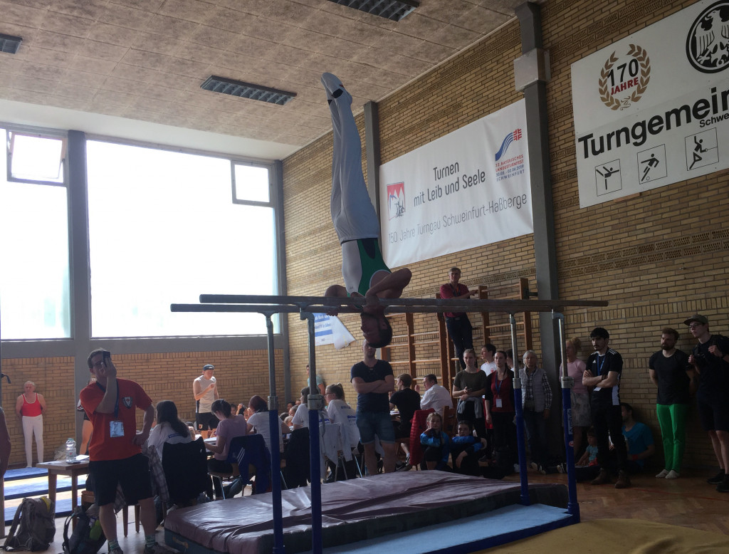Am Freitag den 31. Mai durften dann auch die Jungs im klassischen Geräte-Vierkampf zeigen, was sie können. So zeigten Stefan und Marc bei allen vier Geräten Barren, Boden, Sprung und Reck eine solide Leistung und konnten sich mit den Plätzen 12 und 20 sehr zufrieden geben. Daneben überzeugte Daniel bei den 4XF Games, einer Mischung aus Crossfit- und Ausdauerwettkampf, mit seinem Können und konnte sich für das Landesfinale am nächsten Tag qualifizieren. Nach einem gemeinsamen Abendessen und einer fröhlichen Runde durch die Stadt endete dieser anstrengende Tag mit einer Gesangs- und Gitarrenrunde mit unseren Zimmernachbarn.
