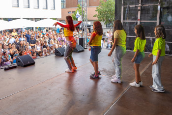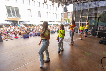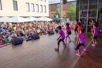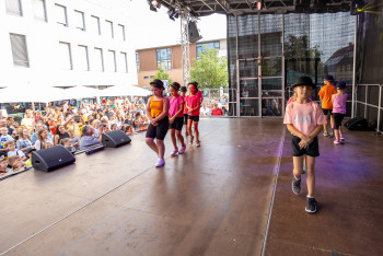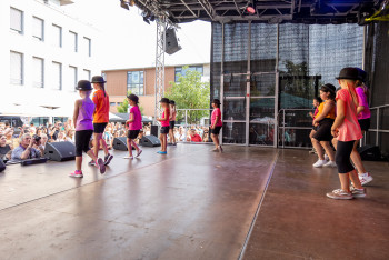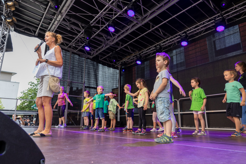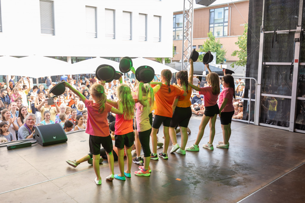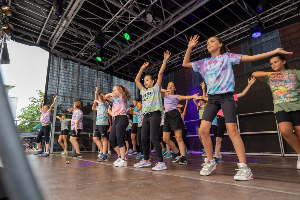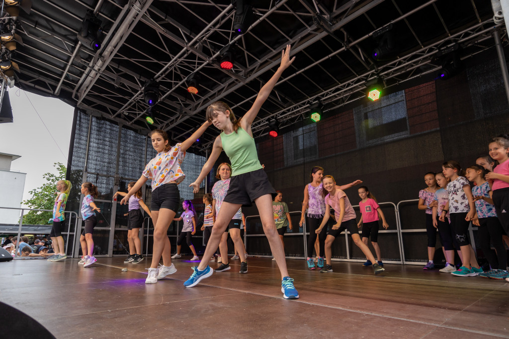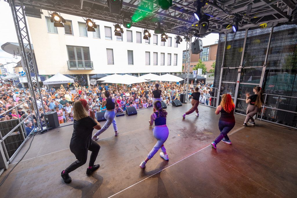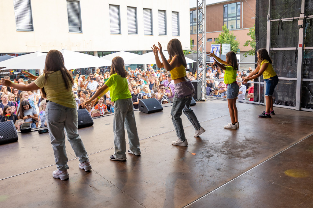 Neben den kulinarischen Köstlichkeiten gab es aber für jeden Geschmack etwas zu entdecken, und besonders beliebt bei den jüngeren war auch das Glücksrad, vor dem sich an beiden Tagen jeweils lange Schlangen bildeten. Ein herzliches Dankeschön an Julia Strobel, die sich mit viel Einsatz sowohl um die Vorbereitung, Zusammenstellung der Preise und Durchführung an beiden Tagen gekümmert hat. Zusätzlich zum vielfältigen Angebot an unserem Stand wurde das Programm durch die Auftritte von unseren 4 Tanzgruppen, und sonntags zusätzlich von einem Auftritt der Vorschulturngruppen, abgerundet. Danke an die Übungsleiterinnen Mia, Silja, Emely, Ramona, Valeria, Concetta, Melanie und Giulia, die mit ihren Kids eine tolle Vorstellung gegeben haben und zur positiven Stimmung am Stadtfest beigetragen haben. Danke auch an Elly Martinat, für die Moderation unserer Gruppen.